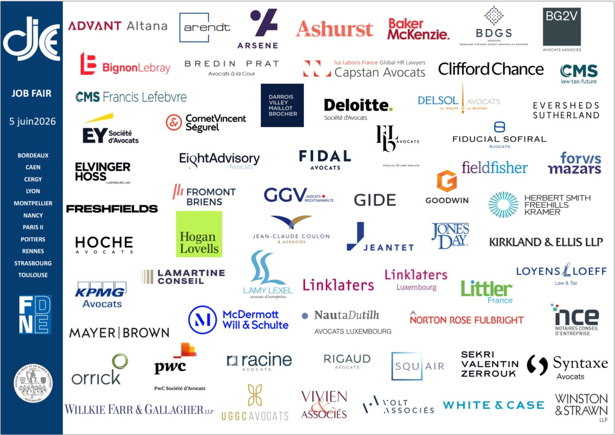 La Fédération Nationale pour le Droit de l’Entreprise tient à remercier pour leur participation à la Job Fair 2025 les partenaires suivants :